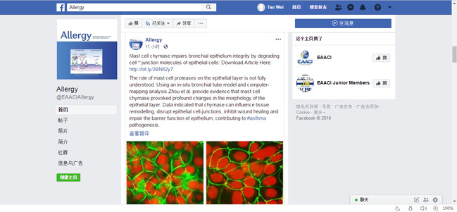近日,我校制藥學院周曉鷹教授的免疫學團隊以常州大學為第一單位(周曉鷹為第一作者和通訊作者)在國際權威醫(yī)學刊物 ALLERGY (SCI一區(qū),IF 6.048)上在線發(fā)表了題為“Mast cell chymase impairs bronchial epithelium integrity by degrading cell junction molecules of epithelial cells(肥大細胞糜酶通過降解上皮細胞連接分子而損傷支氣管上皮的完整性)”的病理學基礎研究論文。