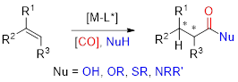 手性羧酸及其衍生物是有機化學(xué)中的一類重要化合物,廣泛存在于醫(yī)藥、農(nóng)藥和精細化學(xué)品等中,烯烴的不對稱氫羰基化反應(yīng)可為這類化合物提供一條潛在高效快捷的合成途徑,得到學(xué)術(shù)界和工業(yè)界的廣泛關(guān)注,但也極具挑戰(zhàn)性。自七十年代以來,眾多化學(xué)家在該領(lǐng)域做了持久而深入的研究。該文章系統(tǒng)總結(jié)了半個世紀以來,過渡金屬催化的烯烴的不對稱氫羧化、氫酯化和氫酰胺化反應(yīng)的研究進展、反應(yīng)機理、應(yīng)用實例以及該領(lǐng)域現(xiàn)階段仍然面臨的問題和挑戰(zhàn)等,為不對稱氫羰基化反應(yīng)的后續(xù)研究提供了參考。史一安團隊在烯烴的氫羰基化反應(yīng),包括不對稱氫酯化和氫羧化反應(yīng)進行了長達十年的系統(tǒng)而深入的研究。團隊研究工作得到了常州大學(xué)和國家自然科學(xué)基金等的大力支持。(通訊員/任濤 審核/張屹 編輯/孫悅)