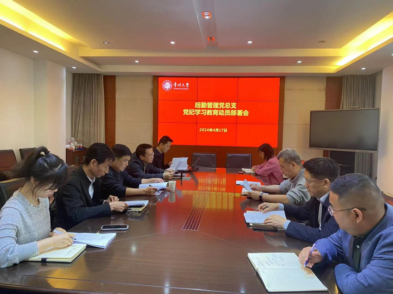 4月17日上午,后勤管理黨總支召開黨總支委員會(擴大)會議部署黨紀學習教育,深入學習貫徹習近平總書記關于黨紀學習教育的重要講話和重要指示精神。后勤管理黨總支委員、各支部書記、科級及以上干部等參加會議,黨總支書記王金剛主持會議。