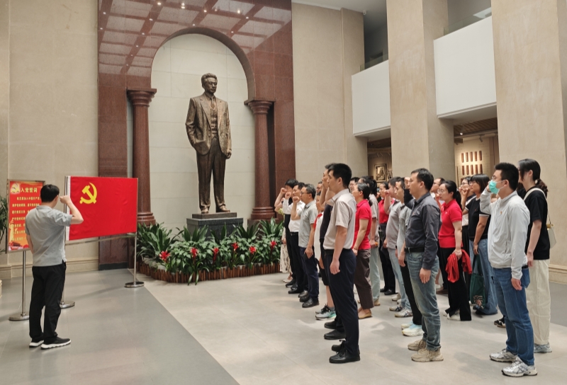 在瞿秋白同志雕像前,面對鮮紅的黨旗,全體黨員用鏗鏘有力的聲音重溫了入黨誓詞,字字千鈞,莊嚴(yán)豪邁,表達了黨員們永葆初心使命,為共產(chǎn)主義奮斗終身的堅定信念和決心。