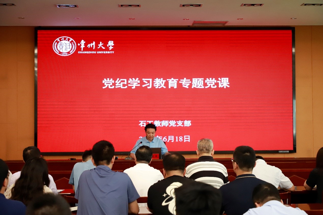 為深入學(xué)習(xí)貫徹習(xí)近平總書記關(guān)于黨紀(jì)學(xué)習(xí)教育的重要講話和重要指示精神,落實學(xué)校黨委關(guān)于開展黨紀(jì)學(xué)習(xí)教育的相關(guān)要求,6月18日上午,黨委常委、副校長彭明國為石工學(xué)院講授“加強(qiáng)黨的紀(jì)律建設(shè),抓好黨紀(jì)學(xué)習(xí)教育”專題黨課。石工學(xué)院黨政班子、支部書記及石工教師黨支部全體黨員參會,院黨委書記彭浩平主持會議。