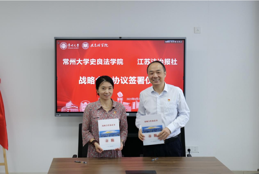 8月29日上午,常州大學(xué)史良法學(xué)院與江蘇法治報(bào)開(kāi)展戰(zhàn)略合作座談會(huì)。江蘇法治報(bào)社社長(zhǎng)徐明軍、副總編輯吳東平、全媒體政法新聞部主任陳廣娟及該社記者馬干昕、李之鵬、呂寅,常州市委政法委副書(shū)記顧濤、宣教處處長(zhǎng)馬劍,史良法學(xué)院黨委書(shū)記陳婷、院長(zhǎng)張建等參加會(huì)議。雙方圍繞深化法治宣傳、人才培養(yǎng)、資源共享等領(lǐng)域合作進(jìn)行深入交流,并簽署戰(zhàn)略合作協(xié)議。
