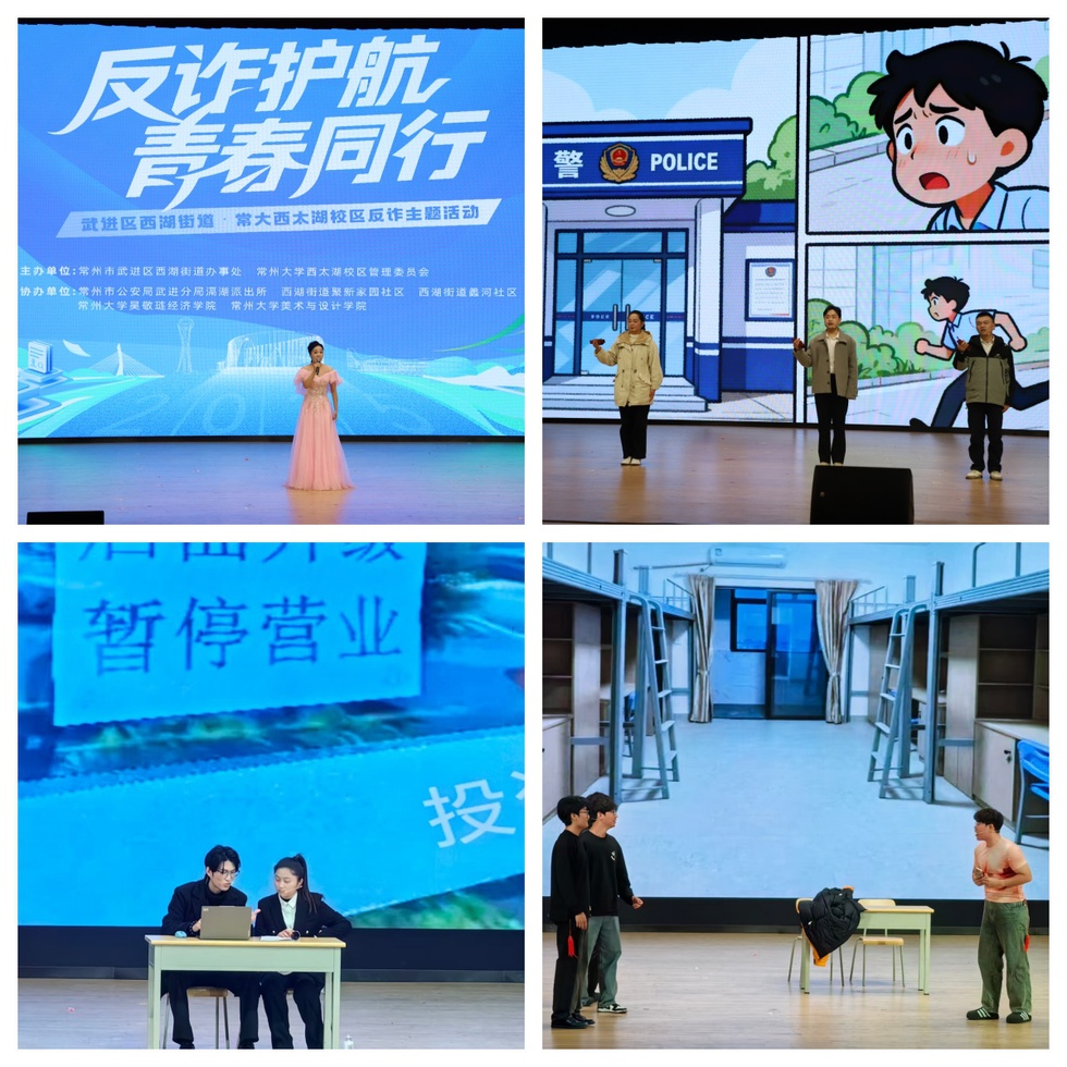 活動(dòng)以音樂(lè)與影視學(xué)院表演《在希望的田野上》啟幕,聚新家園社區(qū)網(wǎng)格員以快板《反詐“聚”先鋒》將知識(shí)化為順口溜,吳敬璉經(jīng)濟(jì)學(xué)院小品《聚寶盆》借幽默點(diǎn)破貪小便宜的陷阱,美術(shù)與設(shè)計(jì)學(xué)院《網(wǎng)緣一線詐相連》、郵儲(chǔ)銀行武進(jìn)支行《星途陷阱》、蠡湖社區(qū)《餡餅?陷阱!》分別聚焦網(wǎng)絡(luò)交友、追星、免費(fèi)福利及冒充公檢法等高發(fā)騙局,通過(guò)多元形式構(gòu)建沉浸式反詐宣傳場(chǎng)景,實(shí)現(xiàn)教育與互動(dòng)的深度融合,為“無(wú)詐校園”“無(wú)詐社會(huì)”建設(shè)凝聚合力。西湖街道“反詐藍(lán)聯(lián)盟”代表韓佳怡復(fù)盤了宣傳、預(yù)警等工作成果。