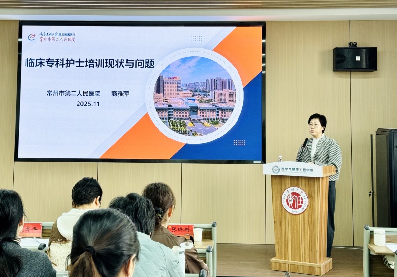 在??谱o士培養(yǎng)專題中,常州市第二人民醫(yī)院護理部主任裔雅萍深入分析了國內??谱o士培養(yǎng)的現(xiàn)狀與困境,并提出以核心能力為本的破局思路。常州衛(wèi)生高等職業(yè)技術學校護理系主任繆金萍從教育者視角,分享了通過產教融合、特色班與現(xiàn)代學徒制等模式,培養(yǎng)貼近臨床需求的護理人才的創(chuàng)新實踐。醫(yī)學與健康工程學院青年博士王濯與靳穎分別就“數(shù)字健康時代腦卒中的全生命周期精準化管理”和“質性研究與Nvivo軟件應用”作了精彩報告,展現(xiàn)了學院教師在慢病管理前沿研究方法領域的探索與積累。與會人員圍繞人才培養(yǎng)方案優(yōu)化與臨床問題驅動的科研選題展開熱烈討論,進一步凝聚了院校合作共識,明確了未來協(xié)作方向。