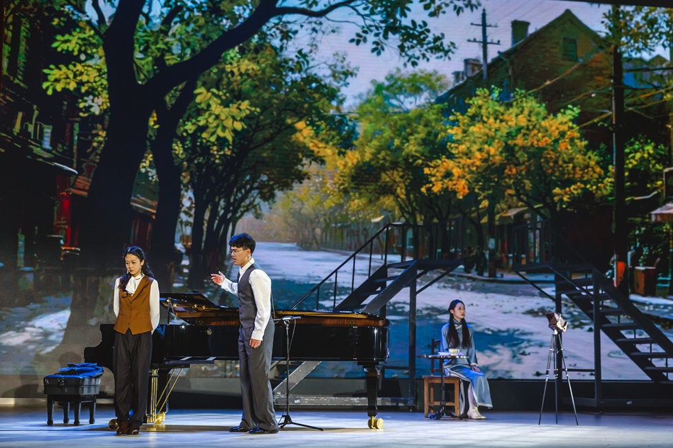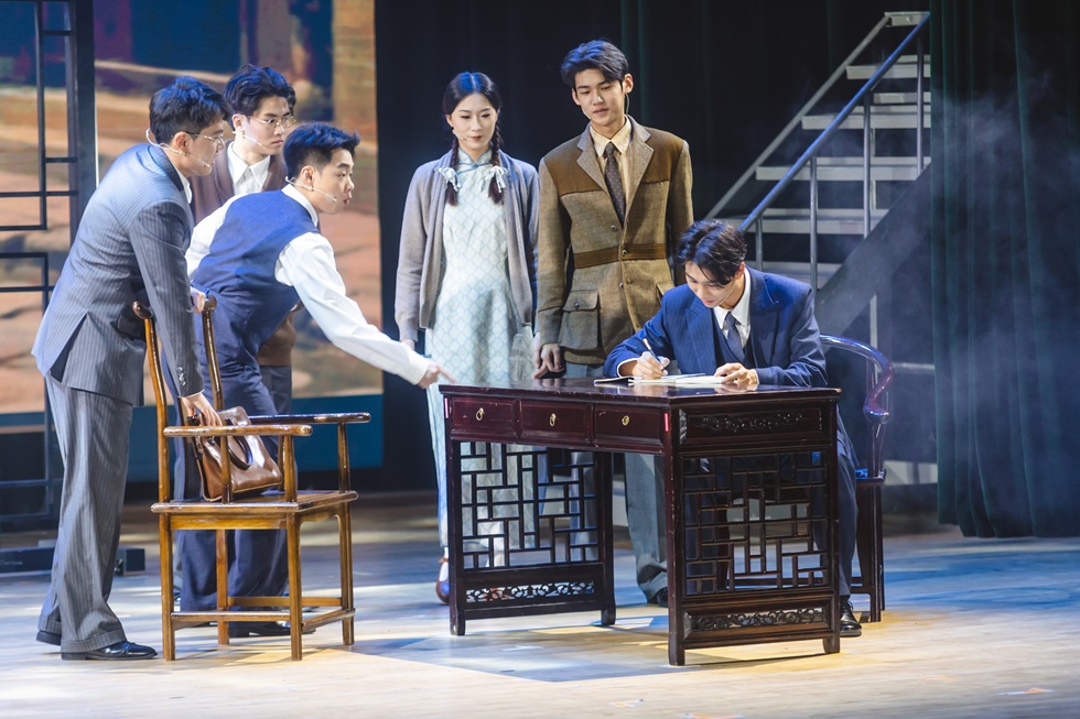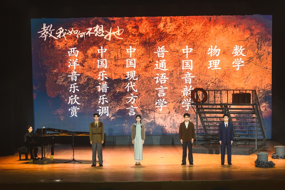 《教我如何不想她》故事圍繞中國現(xiàn)代語言學之父、現(xiàn)代音樂的開拓者趙元任先生的生平展開。《教我如何不想她》中“她”直言為指代所有心愛之人與物,“她”是少年趙元任記憶里喊他回家的母親馮萊蓀,是與他敲碗研音韻、共組“數(shù)人會”的摯友劉半農(nóng),是打破禮教、以“同簽人”相守一生的妻子楊步偉。趙元任與楊步偉從少年學堂時光到異國學術(shù)相知,從攜手婚戀到抗戰(zhàn)堅守,“她”的意象貫穿始終。歷盡時代之變,國家之立,趙元任點明“她”更是故土與祖國。作品以“想她”為魂,構(gòu)筑起四重敘事樂章。“想她”不僅是對一個人的懷想,更是對一個時代的回望與致敬,深情勾勒出百年前社會與人文的燦爛圖景。全劇以《教我如何不想她》的“她”為紐帶,藏盡他的親情、友情、愛情與家國情懷。